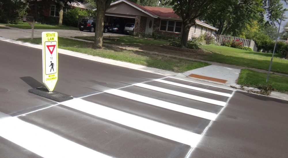 Implementation was a key goal - and began even before the plan was completed. On the photo: implementation of high-visibility crosswalks near a school to address issues discovered during site visits and timed for implementation with the city's Engineering Department as part of previously-scheduled street maintenance.
